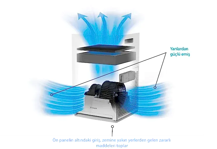 MC30Y daikin hava temizleyici benzersiz 3 adımlı hava temizleme süreci ile iç mekân havasını tamamen yeniler:- Güçlü Emiş: Geniş bir alanı 3 yönden çeker.