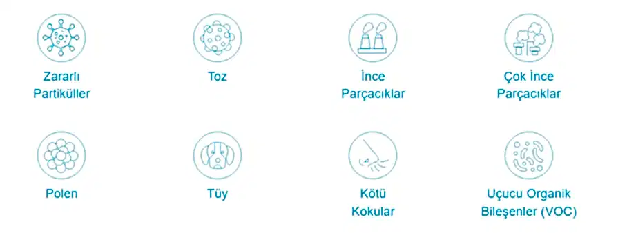 - Kirletici Tutma: Elektrostatik HEPA filtre sayesinde zararlı maddeleri yakalar.