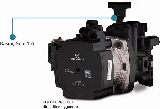 Frekans kontrollü yüksek verimli pompaya sahiptir. Isıtma tesisatında suyun dolaşabilmesi için sirkülasyon pompası kullanılır.